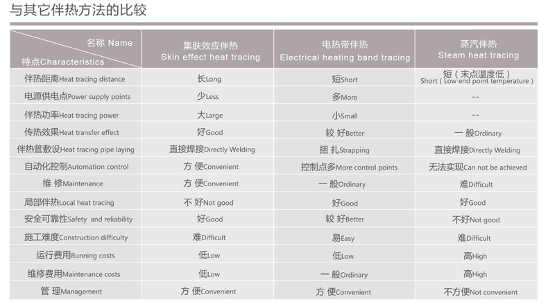 ◆ 適應性強,應用范圍廣適應所有長、中、短距離金屬輸液管道的伴熱和加熱,適用于管道的不同敷設方式和任何場所,如:地下直埋、水下、地面架空;適用野外或礦場、工廠、易燃易爆場所。 ◆ 安全可靠、安裝維修方便伴熱管采用鋼管,強度大、密封嚴,有較好的保護作用。 ◆ 該系統(tǒng)獨特的發(fā)熱原理保證了優(yōu)異的加熱特性和加熱效率,從而節(jié)約能源。 ◆ 可以實現(xiàn)自動化控制控制、保護屏均可安裝在儀表室(值班室)內(nèi)。內(nèi)設短路、過流等常規(guī)保護,并可通過溫度傳感器實現(xiàn)溫度調(diào)節(jié)。實現(xiàn)自動化控制,做到無人值守。免維護。 ◆ 可以實現(xiàn)提前預制輸液管與伴熱管焊在一起,外面加上保溫層和保護殼,可在廠內(nèi)預制加工,既方便施工,又容易保證工程質(zhì)量。