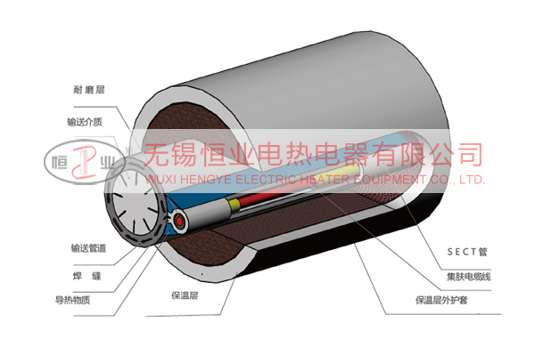 集膚電伴熱系統(tǒng)是基于電流的"集膚效應"和"接近效應"原理。當在碳鋼管中穿一根耐高溫絕緣導線與尾端相連,首端在碳鋼管和絕緣導線分別施以工頻交流電壓時,電流反向沿碳鋼管“內(nèi)壁”產(chǎn)生焦耳熱和電磁渦流加熱,使碳鋼管升溫,而碳鋼管表面處于“絕緣”。然后將其焊在所需輸送管道上作為伴熱器材。